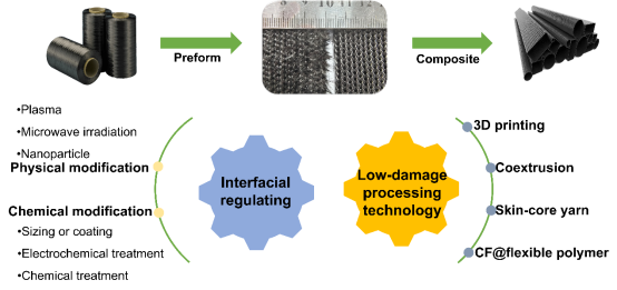 马丕波教授团队与武汉纺织大学陈凤翔教授团队总结了CF界面改性方法和低损伤加工技术。此外,还提出了功能化改性技术与创新织造建议,为未来研究提供新的思路和见解,促进高性能CFRP复合材料在新兴多元化产业中的发展水平。
