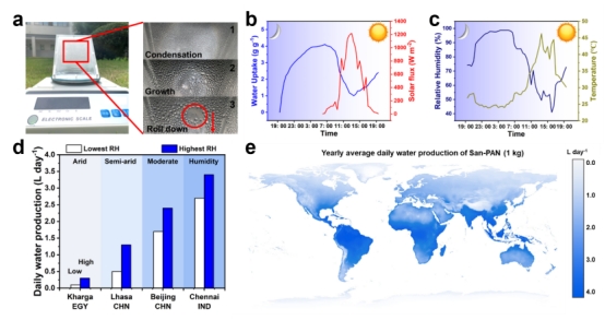 图3:三明治结构纳米纤维膜的户外性能及年产水量预估
