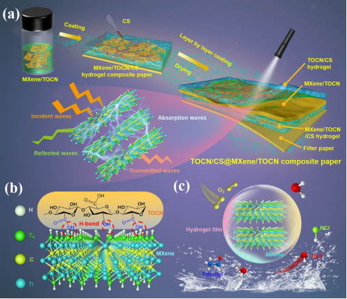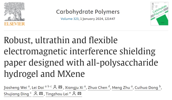 1. 基于全多糖水凝胶和MXene设计的电磁屏蔽纤维素材料