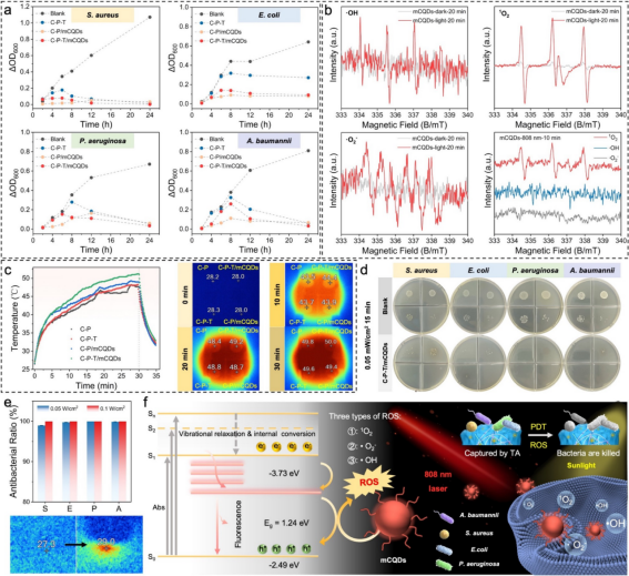 图3. C-P-T/mCQD水凝胶的抗菌机制及效果评价