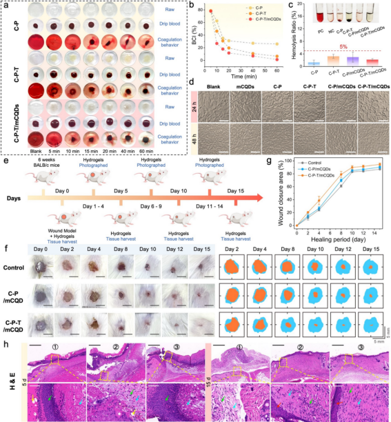 图4. C-P-T/mCQD水凝胶的生物相容性及其对伤口愈合的促进作用探究