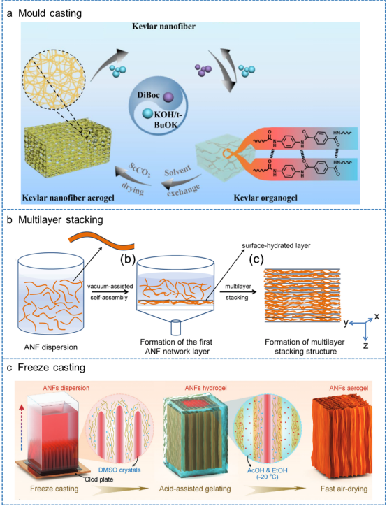 芳纶,作为聚合物家族中的杰出成员,以其超高的机械强度、优异的热稳定性和化学惰性而闻名,广泛应用于航空航天、武器装备、个人防护、汽车工业和休闲体育等领域。传统芳纶纤维及制品虽性能卓越,但在一些需要轻质、多孔、多功能的新兴应用场景中,传统芳纶材料难以满足需求。纳米多孔芳纶气凝胶作为一种新型衍生材料,不仅继承了芳纶聚合物的诸多优良特性,还具备高孔隙率和大比表面积,展现出广阔的应用前景。然而,目前针对芳纶气凝胶的综合研究仍处于起步阶段,对其性能、制备工艺及应用的深入探索显得尤为迫切。