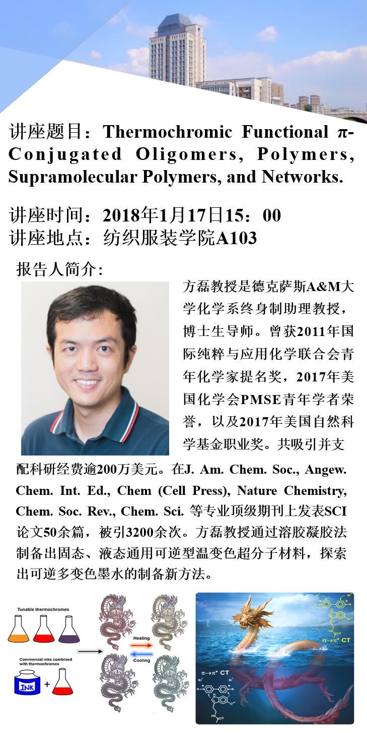 讲座题目:Thermochromic Functional π-Conjugated Oligomers, Polymers, Supramolecular Polymers, and Networks.