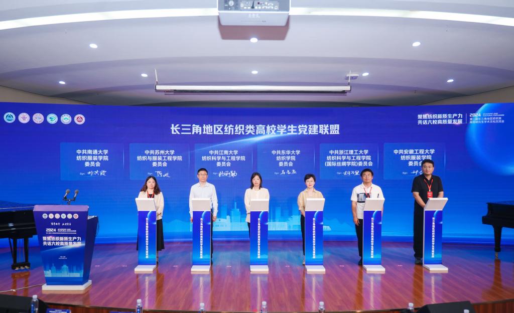 交流会上,长三角地区六所纺织类高校签订了学生党建联盟,探索构建学生党建联学、联建、联创共建机制,发挥党建引领学生高质量发展的集成效能,在思想引领、人才培养、创优创新领域凝聚更大合力,注入更强动能。