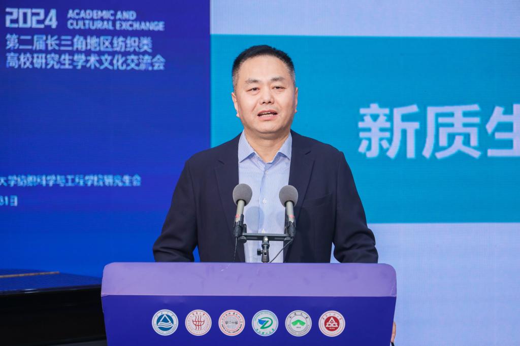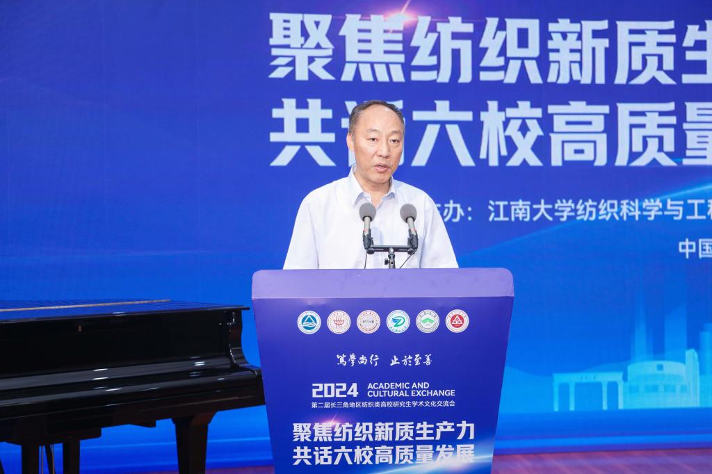 开幕式上,朱飞代表学校向第二届长三角地区纺织类高校研究生学术文化交流会的成功召开表示祝贺。他表示,长三角地区纺织类高校是纺织高端人才培养的主阵地,长三角纺织类高校师生齐聚江南,聚焦纺织新质生产力,共话六校高质量发展,是贯彻落实党的二十大关于教育科技人才一体部署,培养造就新时代纺织拔尖创新人才的生动实践,也是各高校加强交流、促进合作、共同发展的重要举措。他希望各兄弟高校共同探寻研究生人才培养和学科建设的新路径,携手聚力推动新时代纺织学科研究生教育的内涵提升和高质量发展;瞄准纺织科技前沿和关键领域,努力做好科技创新与产业创新深度融合,为纺织行业新质生产力的加快形成提供人才支撑和智力支持。