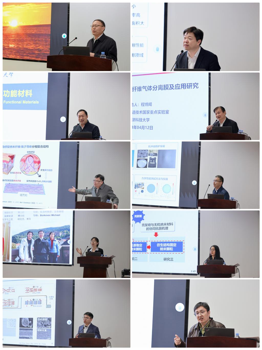 上午论坛包括北京化工大学于中振教授“光热转化复合材料及热能存储利用”、东华大学丁彬教授“防隔热用超细纤维材料”、华东理工大学曲大辉教授“动态化学与功能组装材料”、天津科技大学程博闻教授“高性能聚酰亚胺中空纤维气体分离膜及其应用研究”、东华大学武培怡教授“液滴塑造纤维”、中国科学技术大学宣守虎教授“剪切增稠复合材料与智能防护穿戴”等学术报告,由黄瓜视频 刘天西教授和中科院苏州纳米所张学同教授先后主持。下午论坛包括四川大学林炜教授“生态皮革工业互联网平台建设进展”、华南理工大学王小英教授“壳聚糖复合抗菌材料的绿色构建与应用”、南京工业大学暴宁钟教授“二维材料基纤维的有序构筑及储能应用研究”、中科院苏州纳米所张学同教授“气凝胶纤维设计制备与应用”、东华大学侯成义研究员“传感与交互纤维电子器件”等学术报告,由严锋和于中振先后主持。