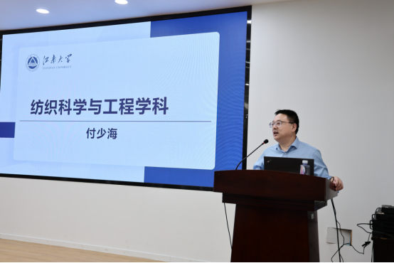 付少海院长从学科建设、社会服务、国际交流及学科交叉融合等维度,全面介绍了学院的发展规划与相关成果。目前已经形成在智能纺织加工技术、生态染整技术、产业用纺织品等传统优势领域持续深耕,同时向军工国防、生物医学、绿色制造等新兴领域拓展,实现传统优势巩固、新兴领域突破的学科发展格局。