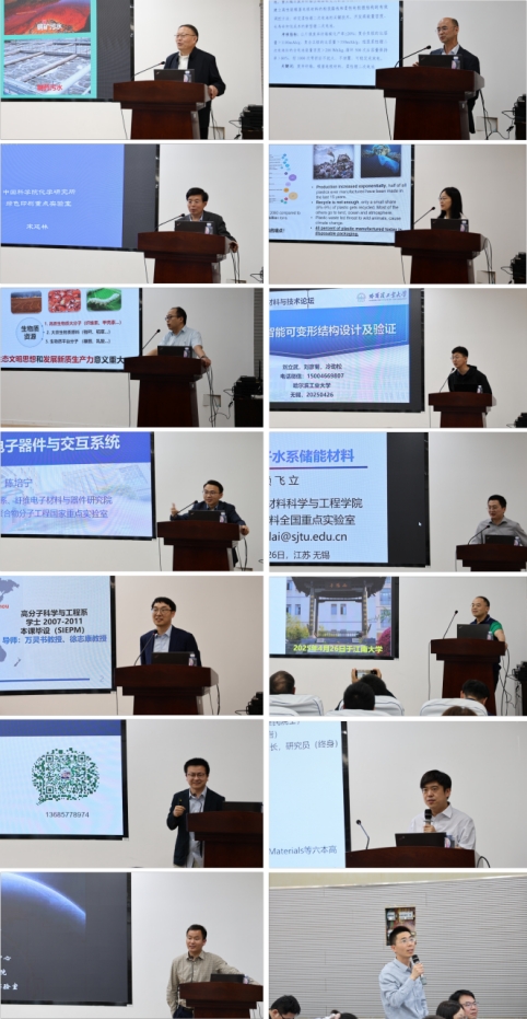 上午论坛报告包括北京化工大学于中振教授“光热转化复合材料及应用”、华中科技大学黄云辉教授“高比能电池关键材料与技术”、中科院化学所宋延林教授“从活字印刷到印刷制造”、华南理工大学王小慧教授“非粮生物质转化利用及其可持续材料”,武汉大学邓红兵教授“生物质纤维医用材料”及哈尔滨工业大学李钦宇教授“形状记忆智能可变形结构设计及验证”,由宋延林教授和黄云辉教授先后主持。下午论坛报告包括复旦大学陈培宁教授“全柔性织物电子器件与交互系统”、上海交通大学赖飞立教授“有机高分子水系储能材料”、浙江大学杨轩教授“纤维素材料在维纳尺度的组装和应用”、北京科技大学李从举教授“高品质电纺纳米纤维制造与创新应用探索研究”、浙江大学刘英军教授“石墨烯纤维基导热材料制备及应用探索”、西北工业大学刘旭庆教授“基于纤维表面分子工程的功能性纤维材料开发”以及南京大学宋琰教授“纤维与光热调控”,由于中振教授和李从举教授先后主持。