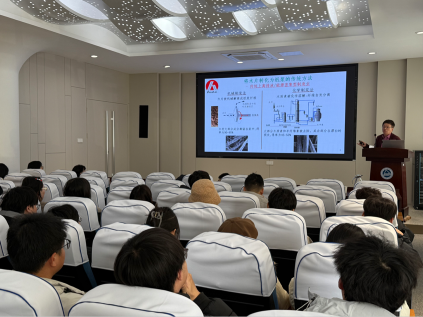 专业分享之余,邹学军博士以“人生总是在快车道上”为题,讲述了自己从年少求学、海外深造到归国深耕制浆造纸领域的数十年历程,也分享了家人在各自领域深耕成长的故事,其家庭的奋进与多元发展特质令人触动。互动环节中,邹学军博士解答了专业选择、职业发展、家庭与工作平衡等问题,强调专业学习重基础、职业发展需终身学习,秉持“家庭第一”的平衡原则。他寄语年轻人心怀梦想、勤奋感恩、兼具国际视野,做到“追求优秀,而不是完美”。此次学术报告为与会师生剖析了行业未来发展方向,传递了勇于探索、持续奋进、平衡兼顾的人生态度,尤其为学生的专业研究、职业规划与人生发展提供了宝贵启示。