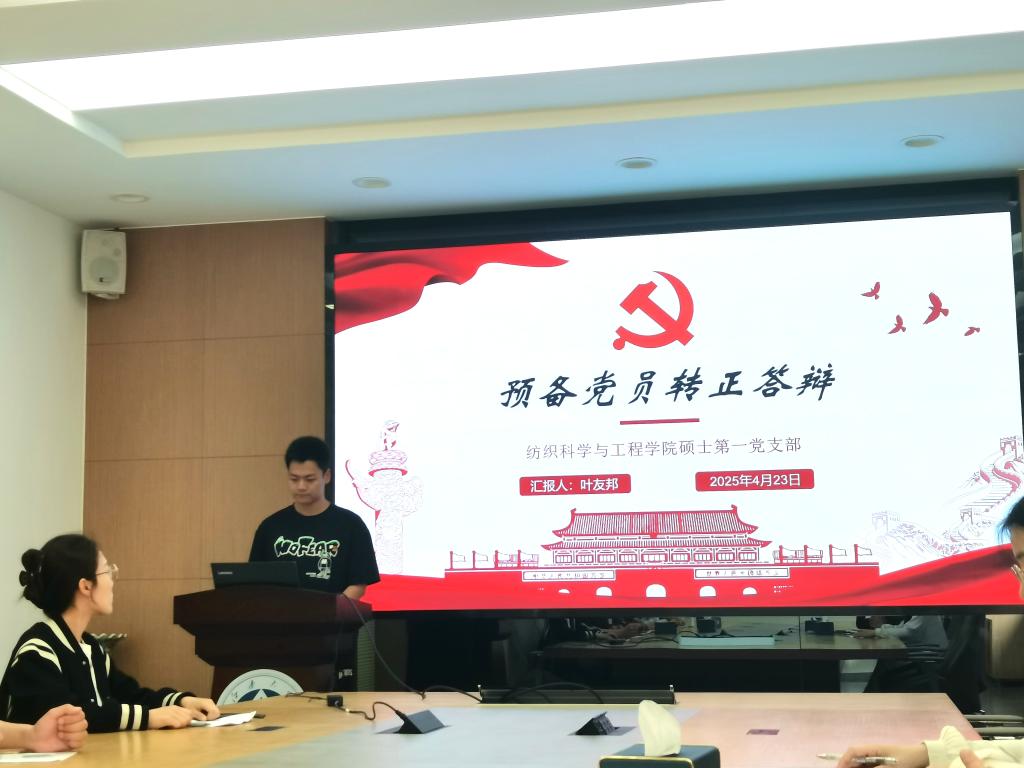 特邀党建组织员沈波,组织员张志新,辅导员孙慧,纺织本科生党支部书记孙婷婷以及2025年上半年8名拟转正预备党员参加答辩会。