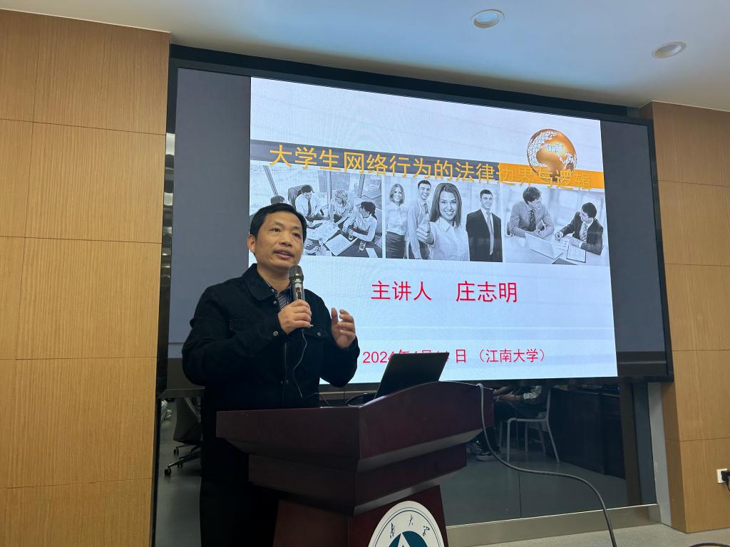 庄志明的讲座围绕《大学生网络行为的法律边界与逻辑》主题开展,他结合国家安全观及当下热点时政,从宪法和国家安全法、反分裂国家法等具体法律出发,从言论的法律边界、网络中评论逻辑与网络账号相关规矩三个方面进行讲解。他指出,大学生国家安全意识培养至关重要,高校学生既是网络新媒体的受众,也是改善网络生态的重要力量,他希望当代大学生在网络上要积极发声,传播积极向上正能量;理性思辨,敢于对不法行为说“不”;加强自律,守护和谐稳定的网络安全。