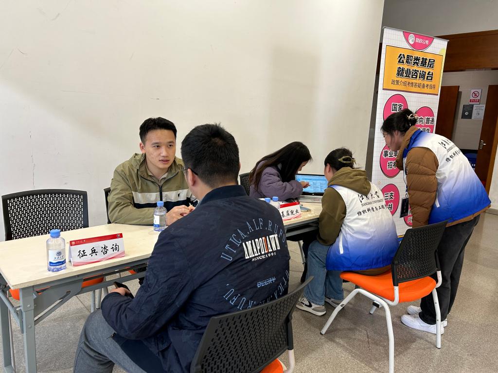 双选会还设置征兵入伍、基层就业咨询专区,精准做好导向就业的前置服务工作,为毕业生顺利求职助力增益。会场气氛热烈,毕业生们与目标企业深入交流,不少毕业生在现场与用人单位已达成初步的就业意向。部分低年级同学也主动提前来感受求职氛围、了解行业发展与企业人才需求。为做好本次双选会,学院从前期宣传邀请、审核确认招聘单位,与用人单位精准对接,再到会场布置与组织等,为用人单位提供全程“一对一”志愿者对接,为来院招聘企业提供优质服务。此外,院领导也来到双选会现场,了解用人单位的人才需求,看望校友及校企合作企业代表,并与应聘毕业生亲切交流。