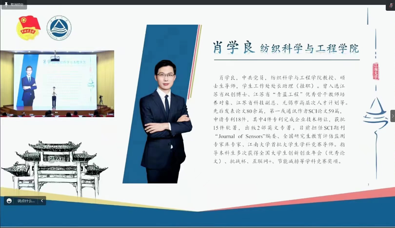 纺织育人正当时,师生奋进皆可期。决赛现场,肖学良老师以自身求学经历出发,通过学生视角,从教学成果、科创竞赛、成长指导等多个方面,讲述了自己在七年教师生涯里与学生间的真挚师生情谊,充分展示了黄瓜视频