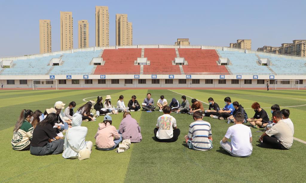 心理健康工作站于5月4日在体育中心开展以“心青年•心健康•心梦想”为主题的户外心理主题班会活动,深入开展心理健康教育。本次活动由21级本科生辅导员、纺织2106班班主任张旭主持,纺织2106班全体学生参加。
