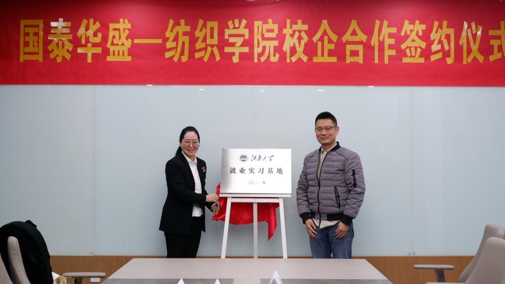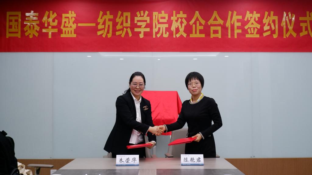 校企合作签约仪式在纺院A304会议室举行。江苏国泰国际集团股份有限公司副总裁、江苏国泰华盛实业有限公司总经理朱荣华,江苏国泰华盛实业有限公司副总经理王飞、人力资源部主任顾华锋、招聘专员胡恺雯、招聘助理杨杰、盛天事业部人事专员张晶钰,黄瓜视频