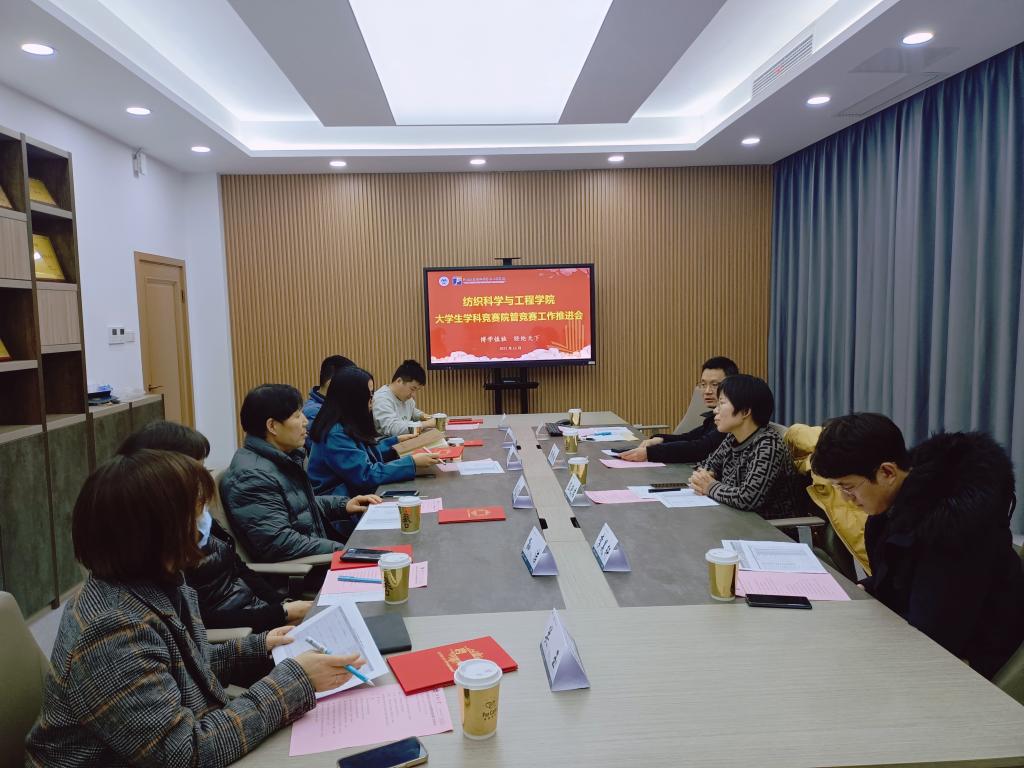 会上,陈裕首先向会人员通报了学院师生在2021年院管竞赛中的参赛及获奖情况,并就2022年院管学科竞赛的工作推进目标进行解读。同时为了进一步提升院管学科竞赛的参赛数量和获奖频次,促进赛事参与的优化循环及专业赋能,学院聘任杨瑞华、关玉、李大伟、顾鹏、孙洁、刘基宏6位老师担任学院大学生学科竞赛指导老师,分别对口指导全国大学生纱线设计大赛、全国大学生绿色染整科技创新竞赛、全国大学生非织造材料开发与应用大赛、中国纺织类高校大学生创意创新创业大赛、中国高校纺织品设计大赛、全国纺织类大学生工程训练综合能力竞赛。陈艳君副书记、黄锋林副院长为各位老师颁发聘书。
