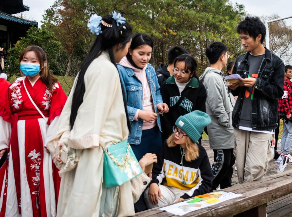 汉文化知识竞赛共分为初赛、复赛和决赛三个阶段。初赛以纸质试卷作答的形式开展,由参赛者自由组队,共同完成一份汉文化知识答卷。复赛在知识问答的基础上融入了投壶、华容道等传统文化元素,让大家在游戏中感受传统文化的魅力。决赛以舞台表演的形式直观展现参赛选手的知识水平和人文素养,让同学在沉浸式教育中提升文化素养。