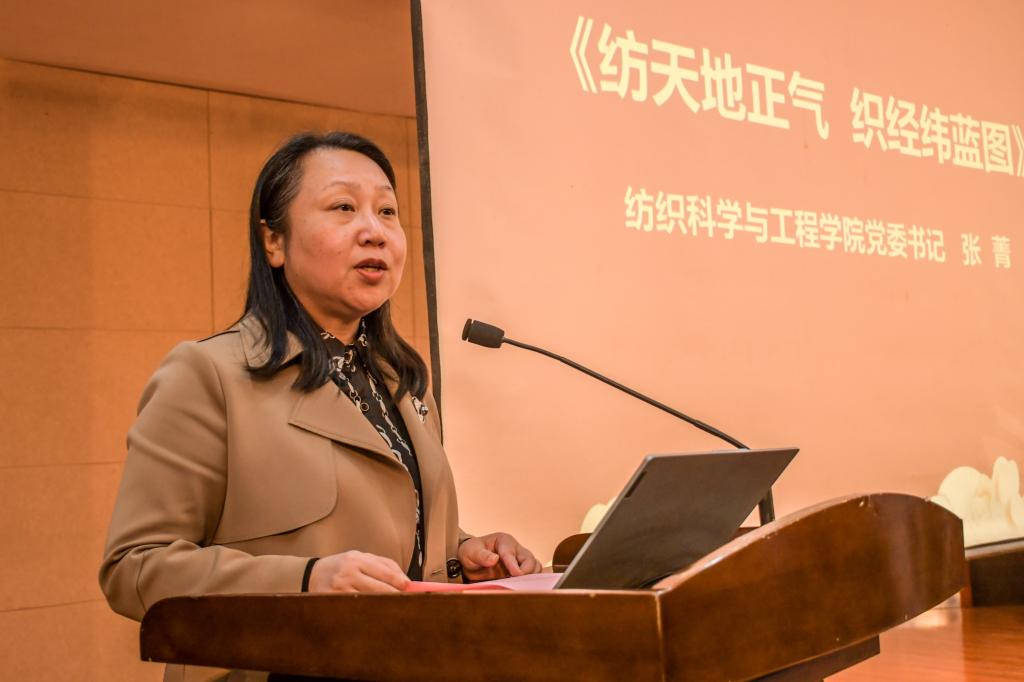 院党委书记张菁代表学院全体师生对290名新同学加入纺院大家庭表示欢迎。张菁就如何在大学阶段最大可能地去实现人生价值给同学们提出了三点建议:第一,砥砺“位卑未敢忘忧国”的家国情怀,坚定理想信念,树立高远志向,厚植爱国情怀;第二,磨炼咬定青山不放松的处世定力,保持定力、严格自律,抵得住诱惑,耐得住寂寞,在人生的康庄大道上矢志不渝、奋发有为;第三,践行俯首甘为孺子牛的初心使命,接过历史的接力棒,承前启后,继往开来,初心不改,虽远不怠。