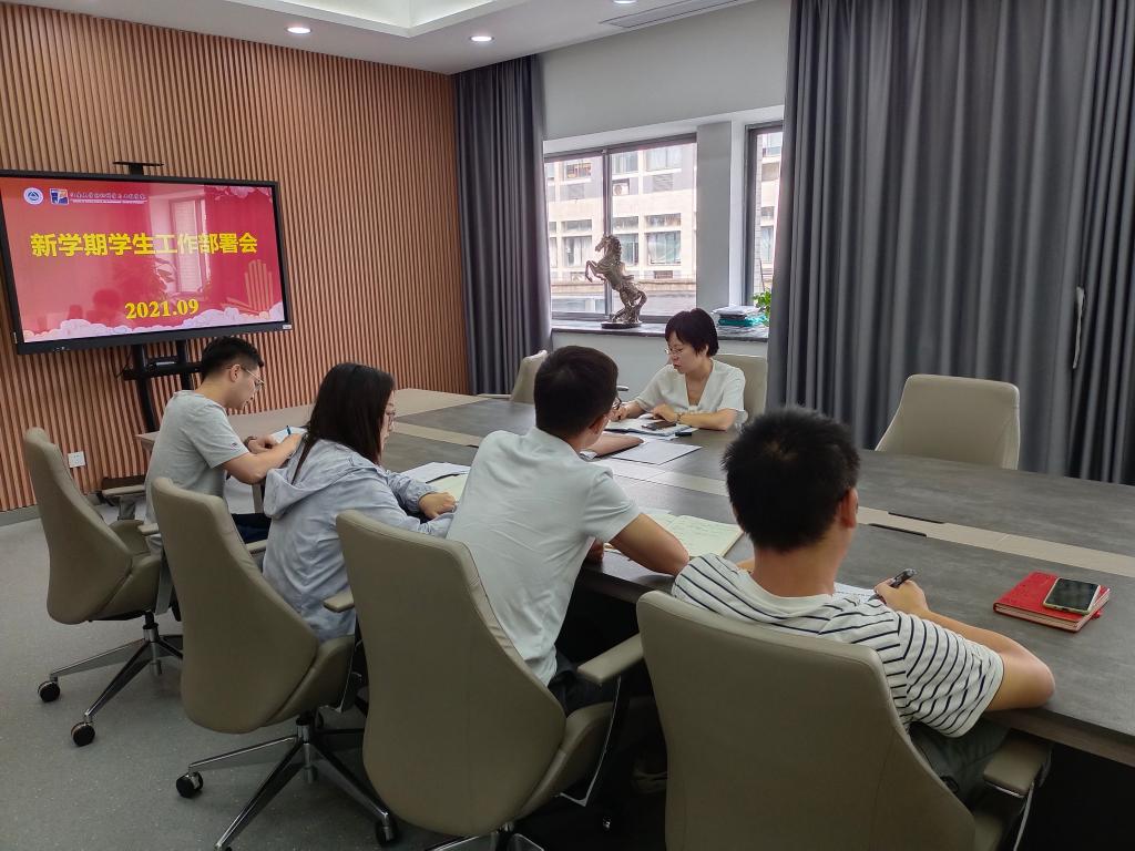 在学院A304会议室召开新学期学生工作部署会,学院党委副书记、副院长陈艳君,全体辅导员参加会议。