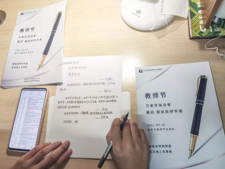 活动一共收集到了382条来自纺织学子的衷心祝福,工作人员们经过整理和筛选后,为同学们代写贺卡,帮大家将诚挚的祝福传递给各位的恩师。