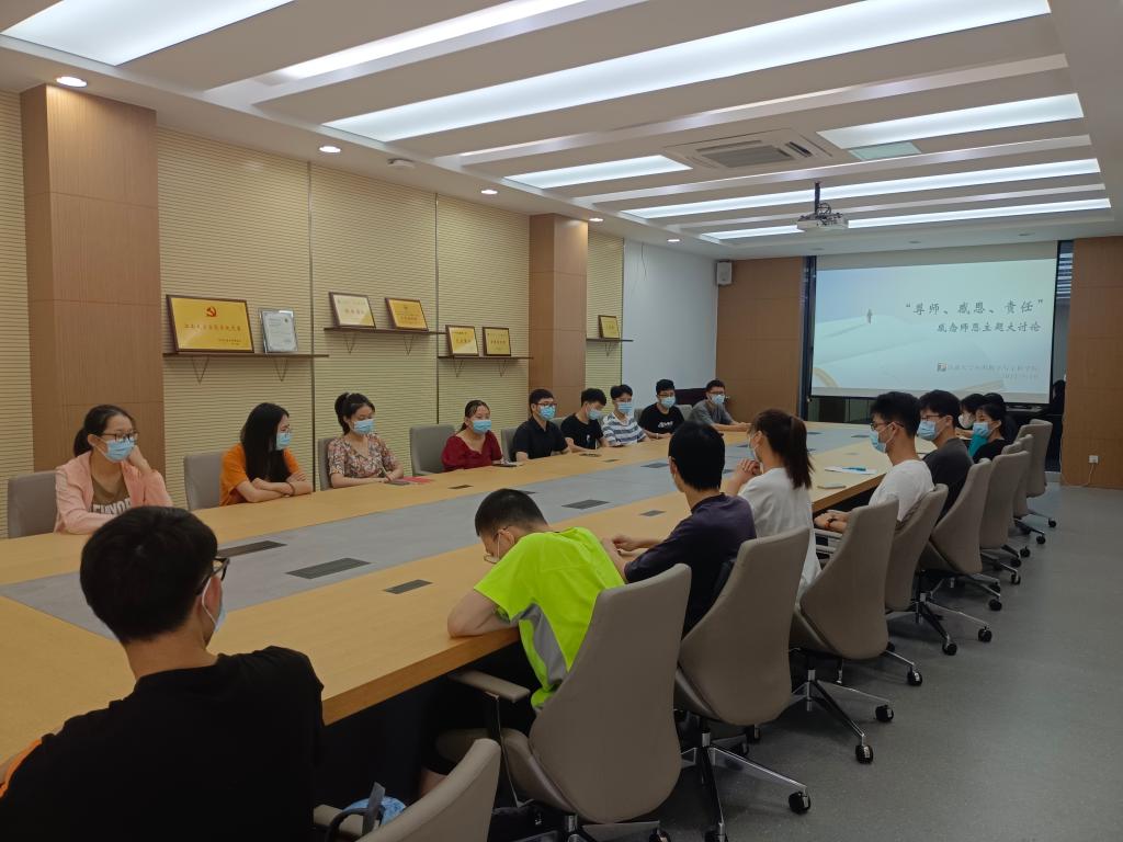 在学院A306会议室开展“尊师、感恩、责任”感念师恩主题大讨论,各年级在校生代表参加讨论会,会议由学院分团委书记陈裕老师主持。