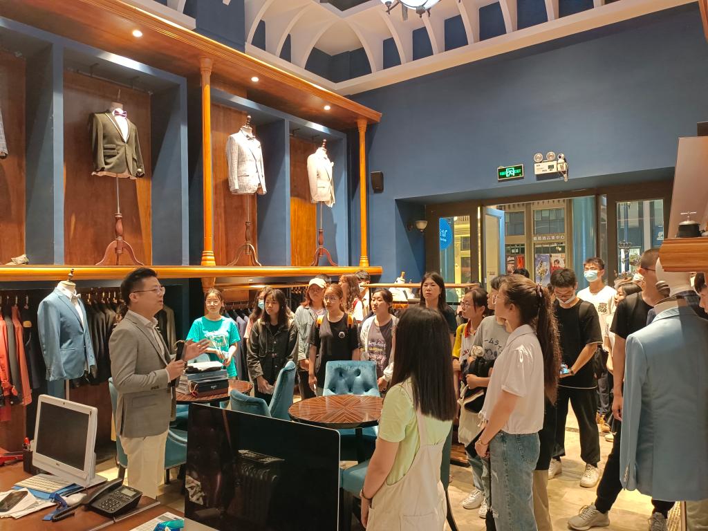 接下来,师生来到科技园区内的学生创业企业参观。在b站百万粉丝up主神奇的老皮VFX的工作室,同学们了解到视频博主的幕后团队工作,并对团队高超的特效技术和极具创新性的策划赞叹不已。在无锡市远方文化传媒科技有限公司,同学们聆听了公司负责人的创业经验谈,纷纷表示要在保证学业成绩的同时不断提升自己的创新能力,多体验、多挑战。最后,一行人来到位处华莱坞影都的麦梯定制店铺参观,这是原黄瓜视频 纺织服装学院的校友马腾创办的麦梯时尚创意设计有限公司。公司以西装定制为主营业务,曾获江苏省创业明星单位、江苏省优秀民营科技企业、江苏省青年创业见习基地等荣誉称号。马腾学长深情回忆了在学校度过的美好时光,认真为同学们讲解了西服定制的专业相关知识,分析了纺织行业的现状,鼓励大家敢于创新,敢于拼搏,期待同学们运用专业知识在纺织服装行业创造自己的价值。精彩的演讲赢得同学们的阵阵喝彩。