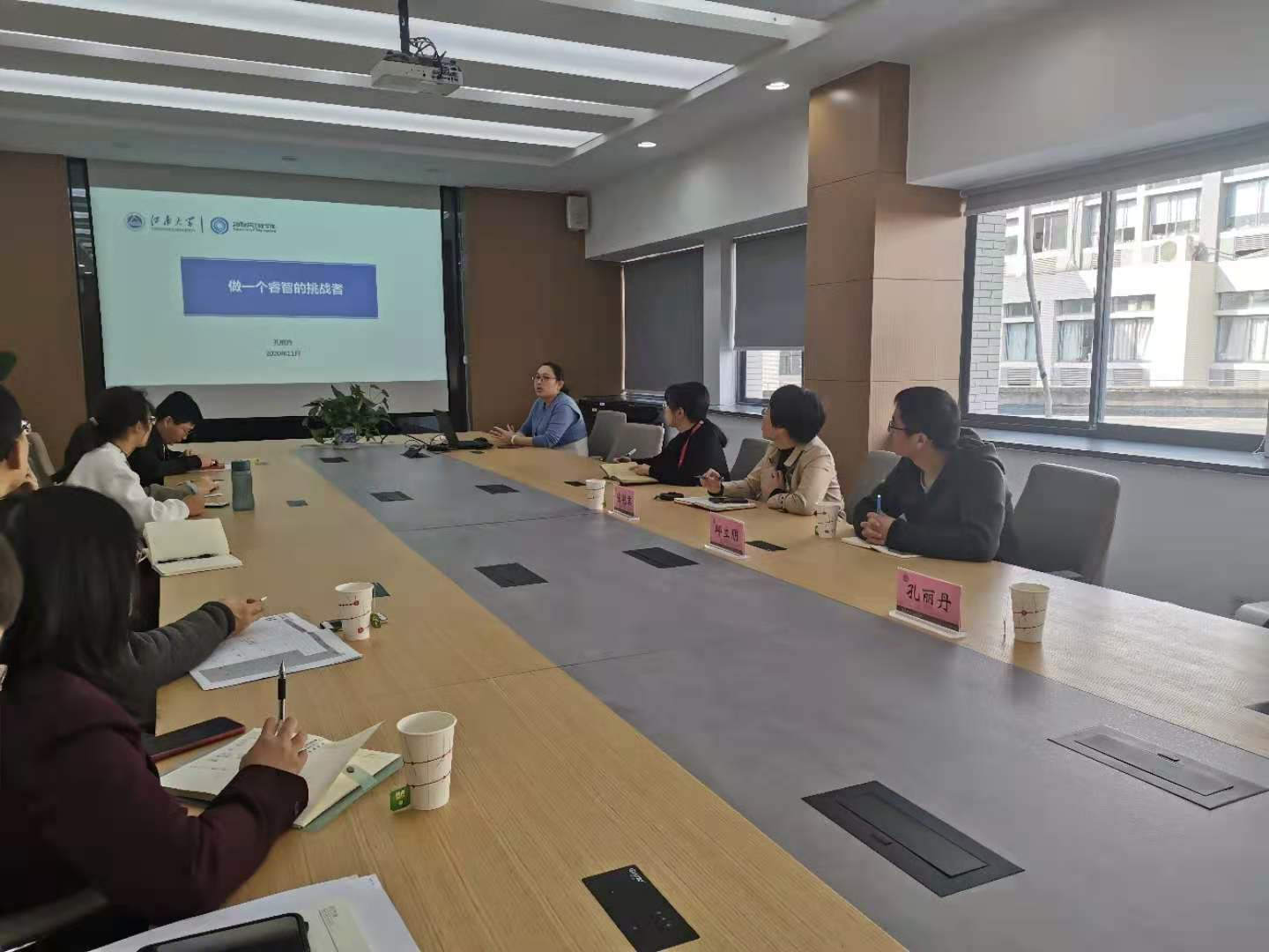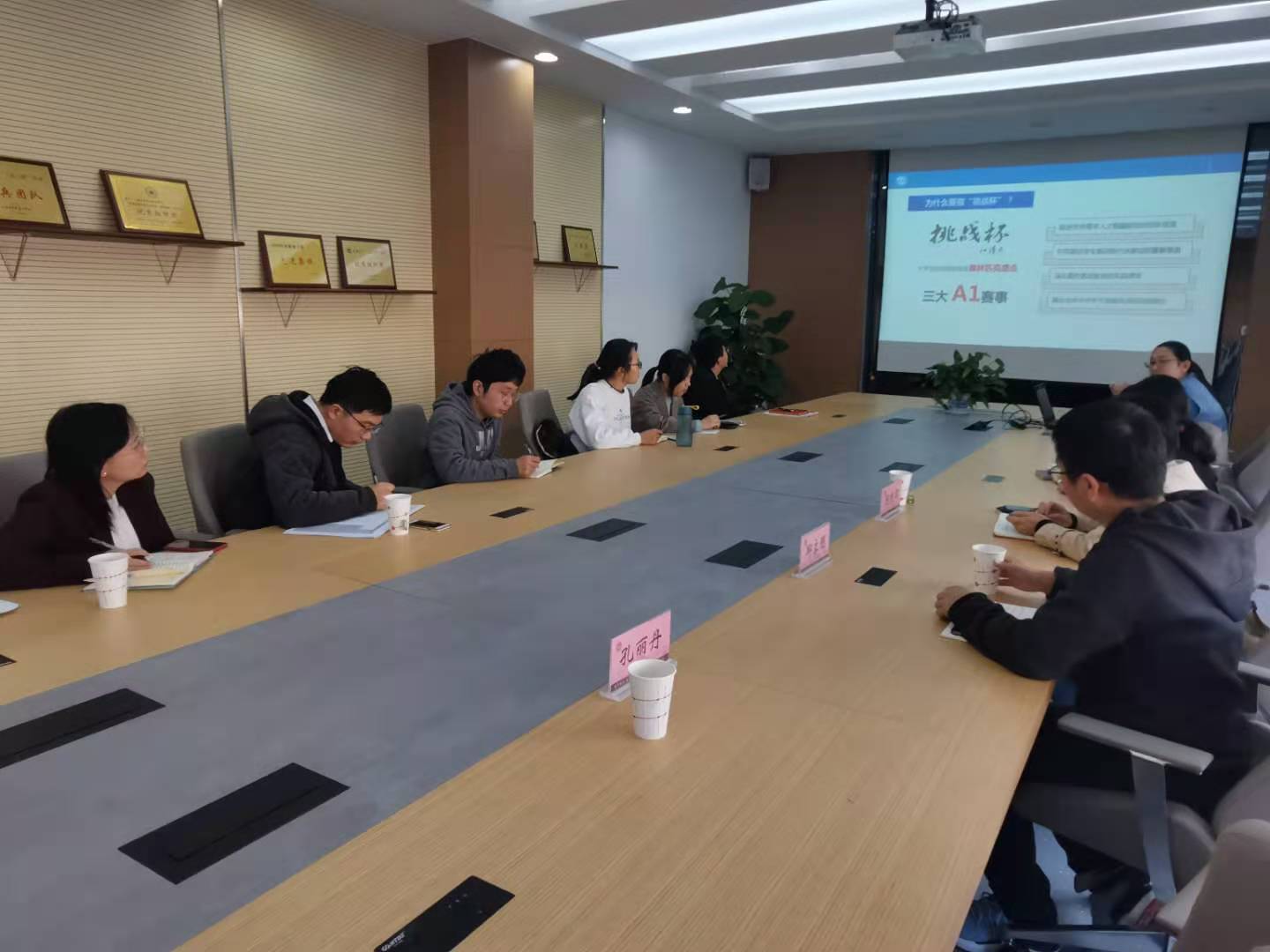 会议伊始,陈艳君副书记对参与本次会议的两位嘉宾表示诚挚的欢迎,同时也希望能通过学院间的交流和互动促进各学院学科竞赛的不断发展。随后,孔丽丹老师以挑战杯为例,将竞赛的整体情况做了简要介绍,并结合往年竞赛组织经验,着重分析了本次大赛的时间节点、大赛章程、作品准备等方面内容。