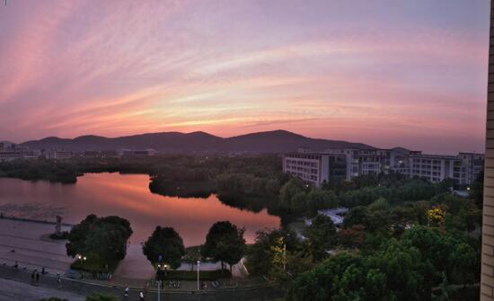 大部分课余时间我是在图书馆的,我喜欢坐在图书馆五楼靠窗的位置,我最享受的是在学习累了的时候看看窗外的风景。从那里可以看到整个小蠡湖,看到湖边的绿植,看到湖上的小岛,看到小蠡湖另一边的医学院,看到医学院后方的雪浪山。令我印象最深的是某天傍晚那仅仅存在几分钟的晚霞。