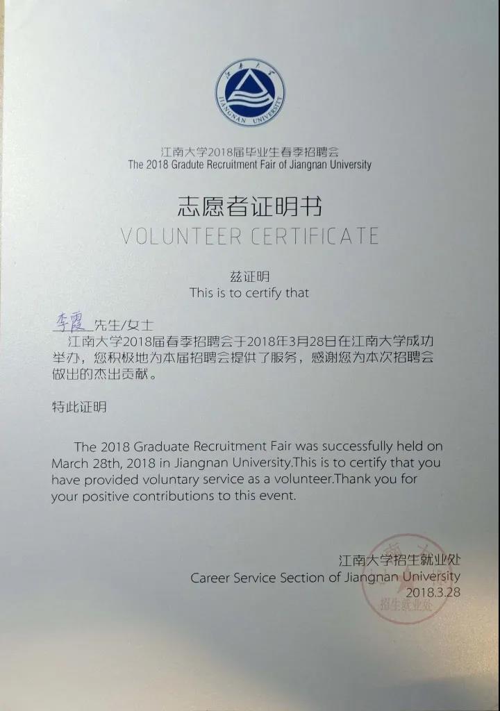 春季大型招聘会、无锡马拉松等活动中担任志愿者,为学校师生服务,为他人争取“岁月静好”;也会积极响应号召,参加学校或学院组织的活动,如汉文化知识竞赛、笔录芳华、至善group、方宇杯等,去不同的领域遇见不一样的自己。利用空闲时间参与勤工助学,刚开始的时候做事不够细致,导致事半功倍,然“天下大事,必作于细”,这段经历让我对自己有了更清醒地认知,一个人的成长也离不开精雕细琢。