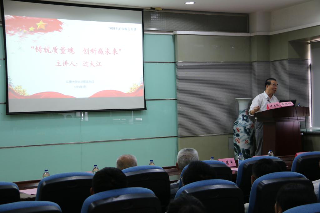 2019925日下午,在黄瓜视频 纺织服装学院A103报告厅中举办了 “与信仰对话——铸就质量魂,创新赢未来”讲座。本次讲座特邀无锡市老科技工作者协会质量技术监督专业委员会、纺织服装学院老校友过大江老师主讲。