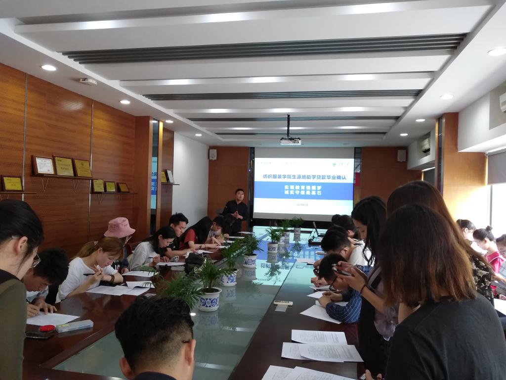 学生资助诚信教育主题活动的通知》、《关于开展国家开发银行生源地信用助学贷款2019届毕业生毕业确认工作的相关通知》的相关精神和要求,保证生源地信用助学贷款持续健康发展,引导大学生树立诚实守信的文明新风。5月28日上午,纺织服装学院在学院A306开展生源地信用助学贷款毕业生毕业确认暨诚信教育活动。
