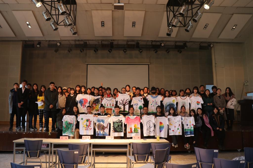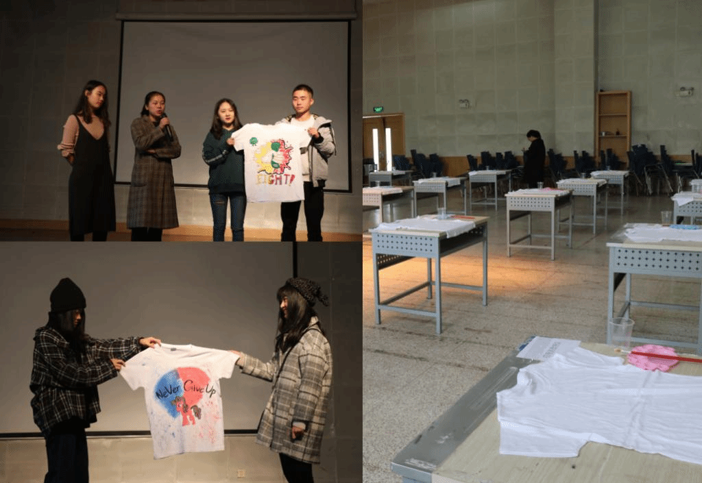 讲座后,T恤涂鸦正式开始。此次涂鸦活动要求同学们以“生生不息”为主题展开创作,旨在让大家深刻地体会到生命的顽强与可贵,从而珍惜生命,健康成长。活动过程中,各个小组组员们分工明确,各司其职,利用颜色搭配与形象表征展现自己的内心情感与心理活动。