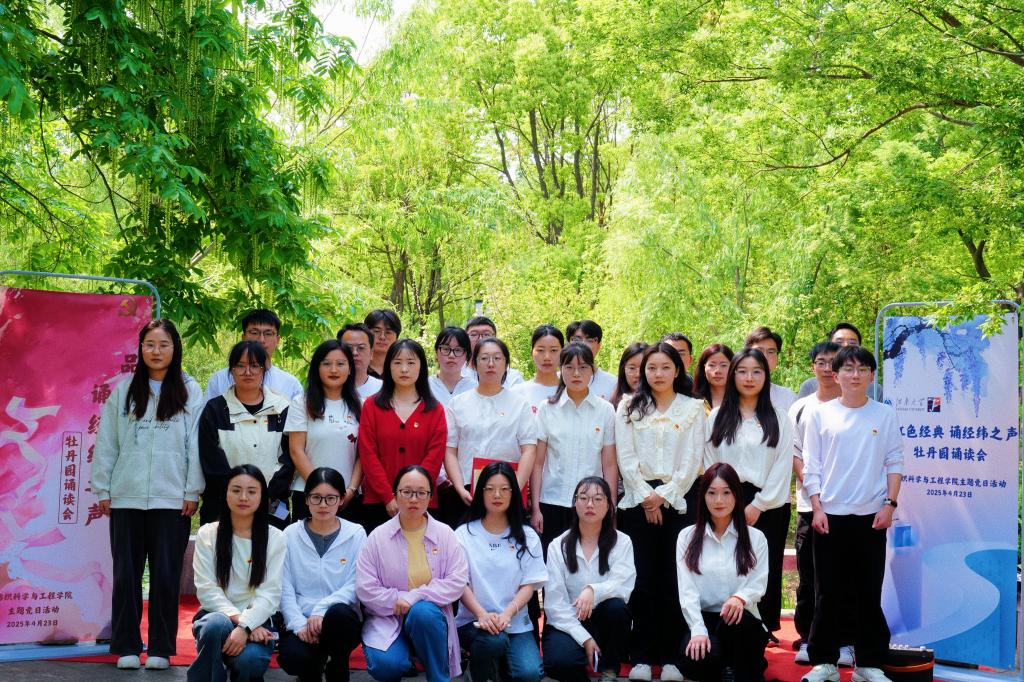 科研路上赤子心,经典引航铸党魂,4月23日下午,黄瓜视频 举办“品红色经典 诵经纬之声”牡丹园诵读会,学院各硕、博士党支部的30位党员代表参与活动。