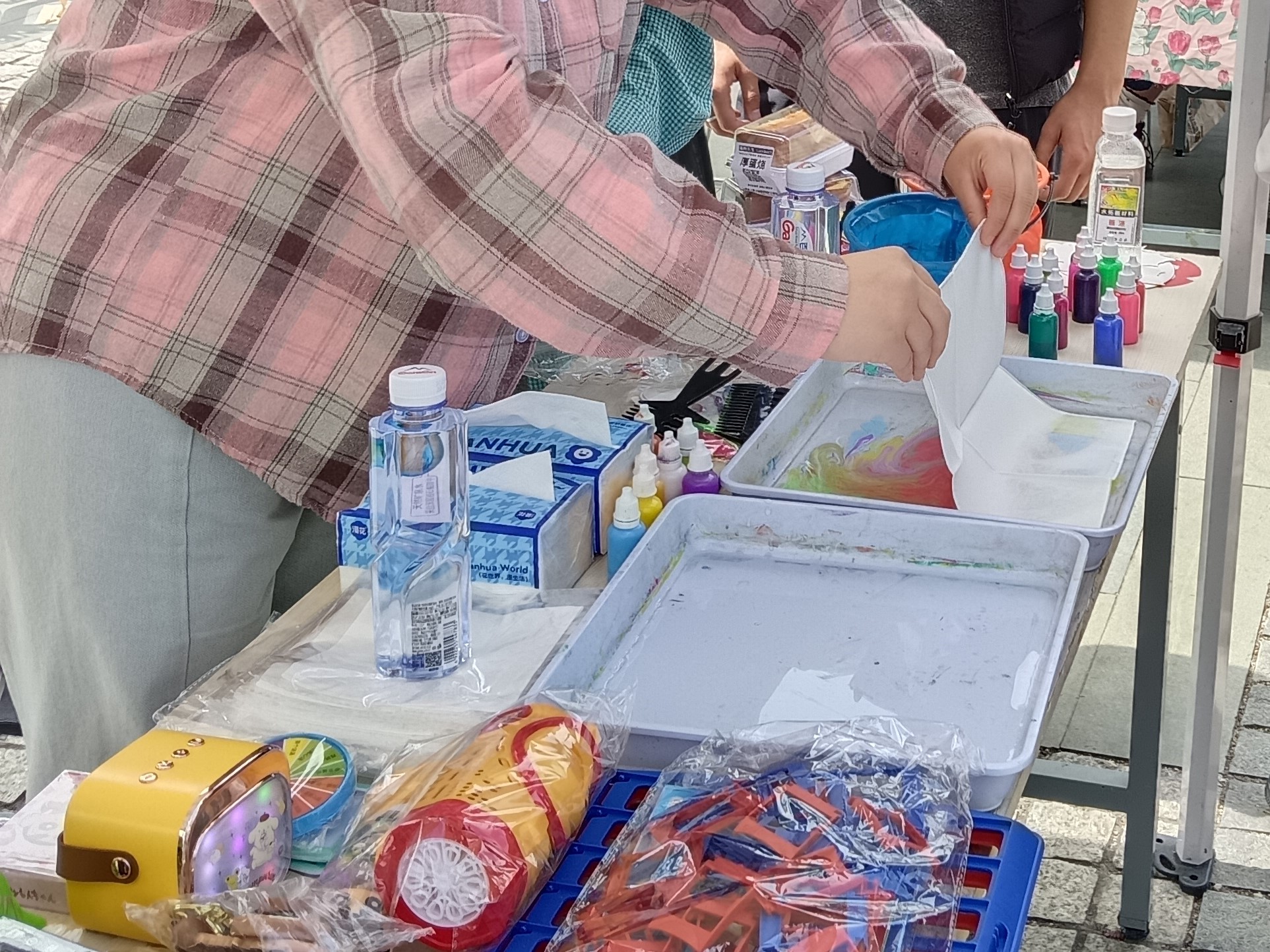 “水拓盲盒”、头像手绘、手工串珠…在这里,传统与现代交织,同学们亲手体验非遗水拓技艺的无限魅力,感受纺织文化的深厚底蕴,双手造物的快乐为明媚的春景增添一份别样的色彩。