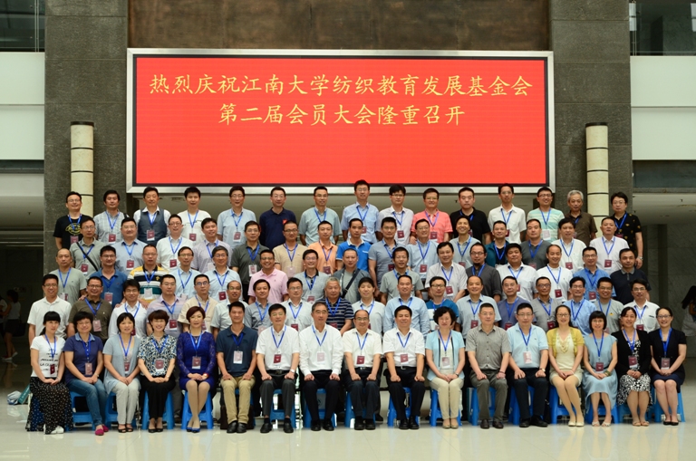 纺织教育发展基金会第二届会员大会在学校图书馆五楼会议室隆重召开,会议由基金会副理事长香港肇丰投资有限公司董事长高春和主持。副校长高卫东理事长、校党委副书记符惠明副理事长、江苏汇鸿股份有限公司董事长蒋金华副理事长、无锡市第一棉纺织厂厂长周晔珺副理事长、无锡市翔泰毛纺有限公司董事长周文涛副理事长以及一百多名会员及获奖师生出席了本届大会。