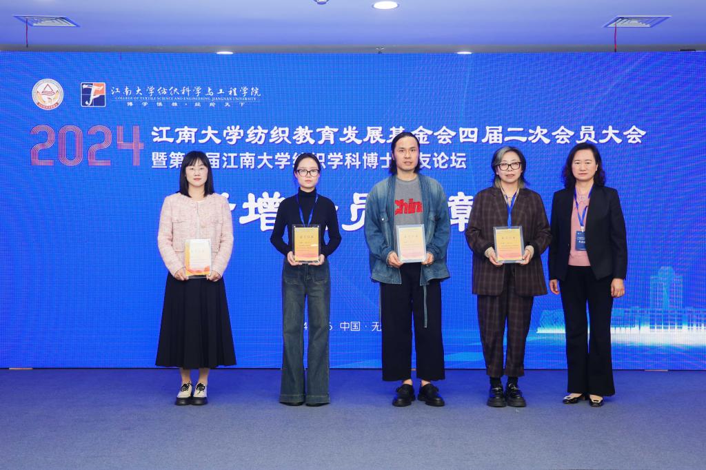 大会对本年度新增的15位会员颁发了会员证、为2024年度杰出会员颁发纪念奖杯。周晔珺作为老会员代表发言,她勉励在校学生增强专业自信,勤于学习、善于思考、勇于作为,努力将个人进步与时代发展、国家前途命运相结合。海裔维科技有限公司创始人张巍作为新会员代表发言,她深情地回忆了在学校生活的点滴,强调了学校教育在她的人生旅程中所起的导航作用,表示将继续发扬传承“纺织服装精神”,助力行业以及学校教育事业的发展。