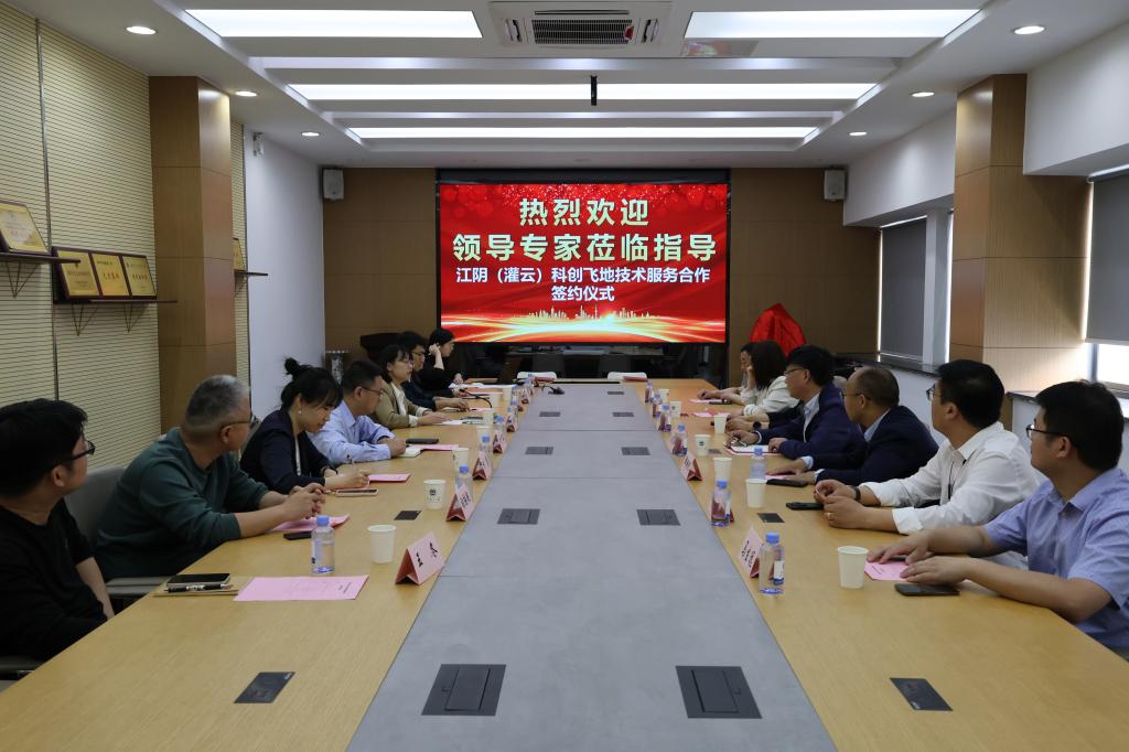 与灌云县科学科技服务中心举行江阴(灌云)科创飞地技术服务合作签约暨“高端纺织”揭牌仪式。灌云县科技局局长刘浦业、副局长郑朝纪、科技服务中心主任马洪海、无锡连云港招商中心副主任王余波、马生远,黄瓜视频