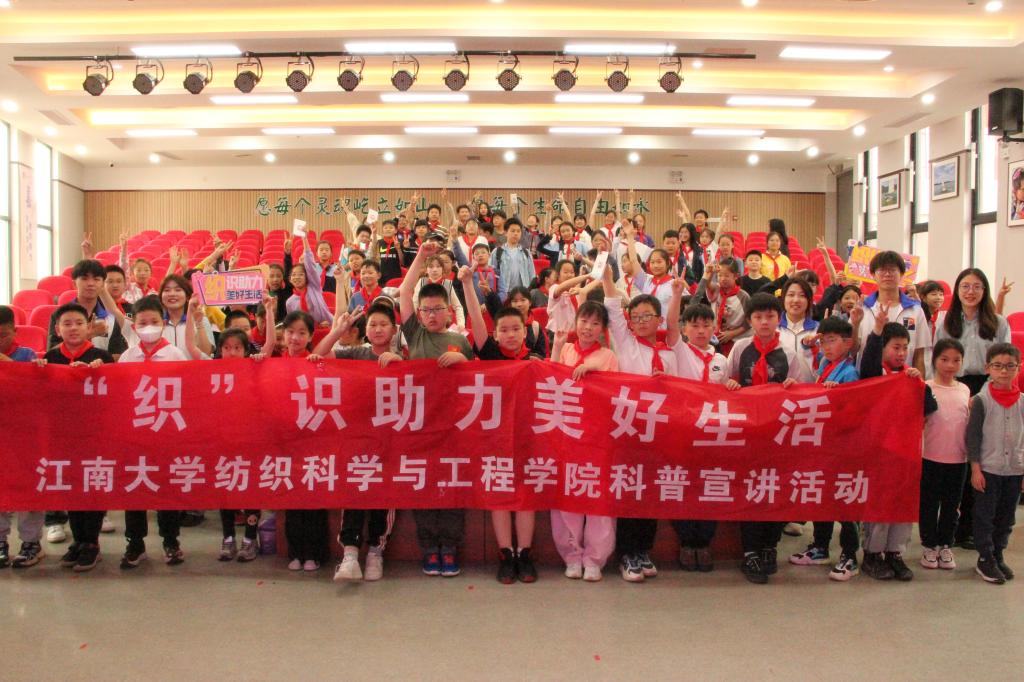 “织”行科普实践团走进无锡市育红山水小学,在四年级、五年级小朋友中展开了一场“小布料,大梦想——探索功能性纺织品的无限可能”科普宣讲活动,将纺织知识与小朋友们天真美好的梦想紧密联系,“织”就一场奔赴未来的探索之旅。