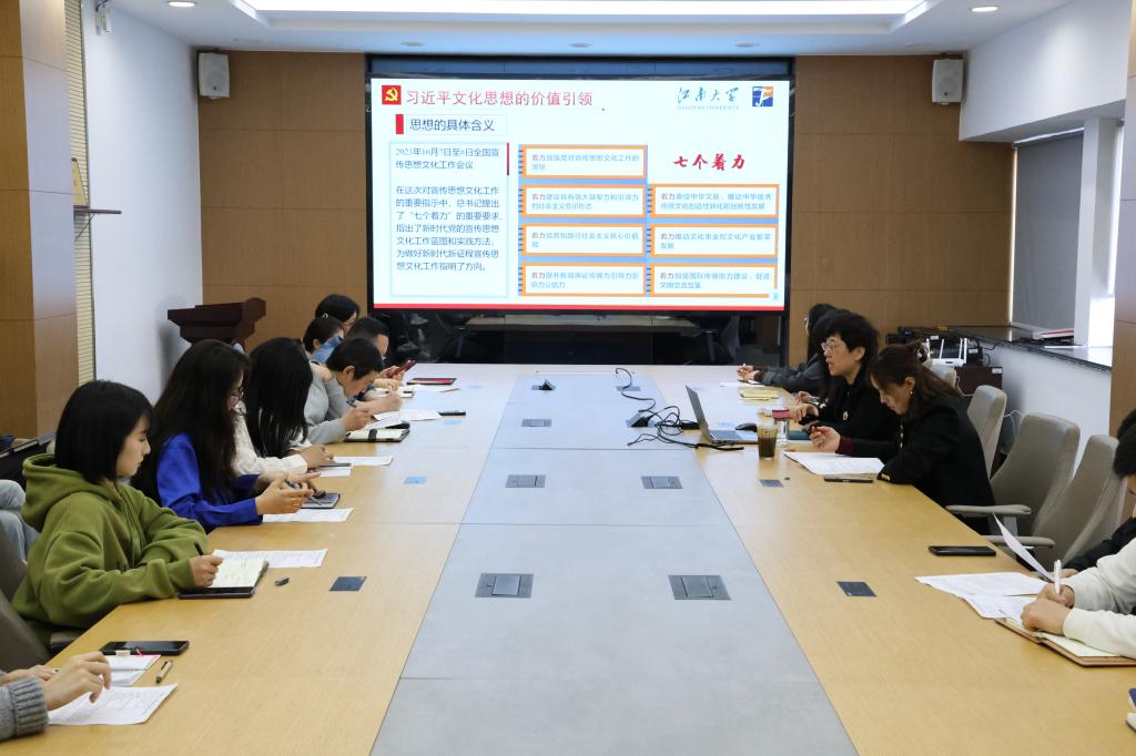 张菁燕首先以《加强党史学习教育积极推进学院文化建设》为题讲党课。她重点讲解了习近平文化思想的形成过程和丰富内涵,解读了《党史学习教育工作条例》详细内容及其实践要求。她提到,习近平文化思想为高校文化建设提供了价值引领和根本遵循,建设什么样的学院文化、怎样建设学院文化,关乎学院办学理念和价值追求,关乎人才培养、科学研究、学科建设的质量和品味。她希望各党支部以基层党建“书记项目”为重要抓手,组织带动全体党员同志学史明理、 学史增信、学史崇德、学史力行,开展“江南纺织”历史追寻、文化追踪、人物寻访和科普推广,以实际行动探寻和弘扬江南纺织精神。