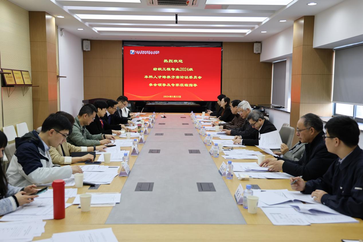 随后,以郁崇文为组长的论证委员会就人才培养目标、毕业生能力、课程体系、课程设置和数字化教学资源建设等方面进行充分讨论与交流。各位委员对纺织工程专业2024级本科人才培养方案修订工作给予了充分肯定,并在完善培养目标、优化课程体系、提高专业课程设置和突出专业特色等方面提出了宝贵的意见和建议。