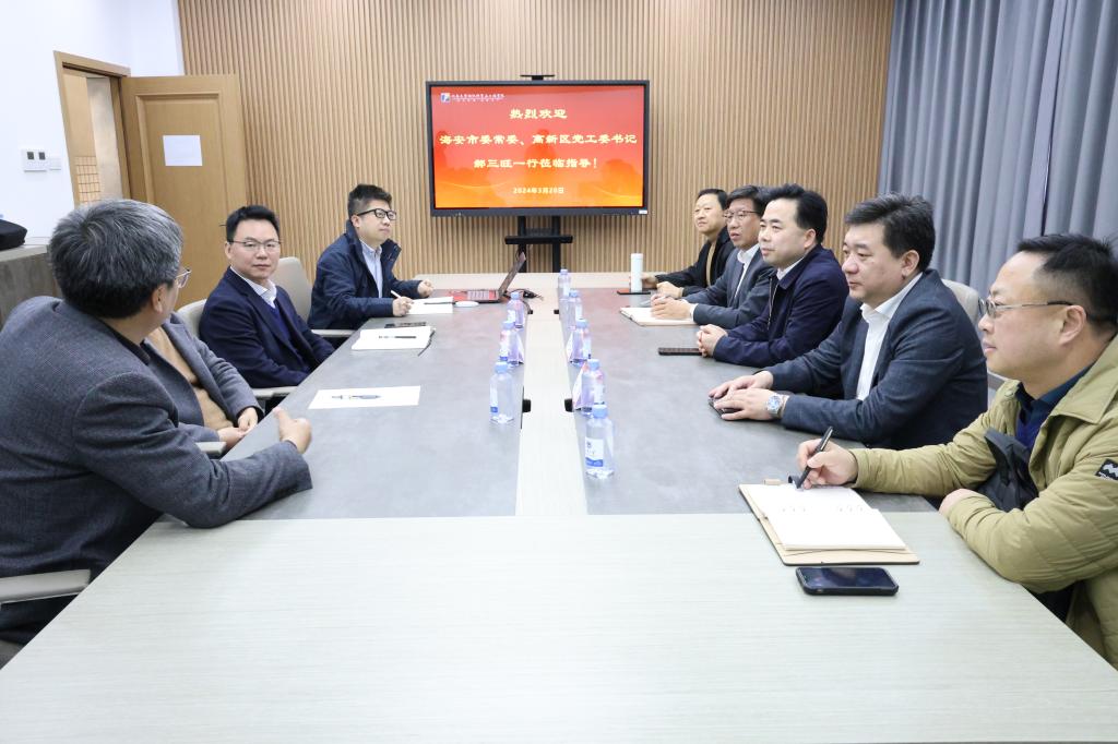 3月20日,海安市委常委、高新区党工委书记郝三旺率队,高新区副主任张锋、胡集街道党工委书记孙坚、副主任顾斌等一行领导,来黄瓜视频