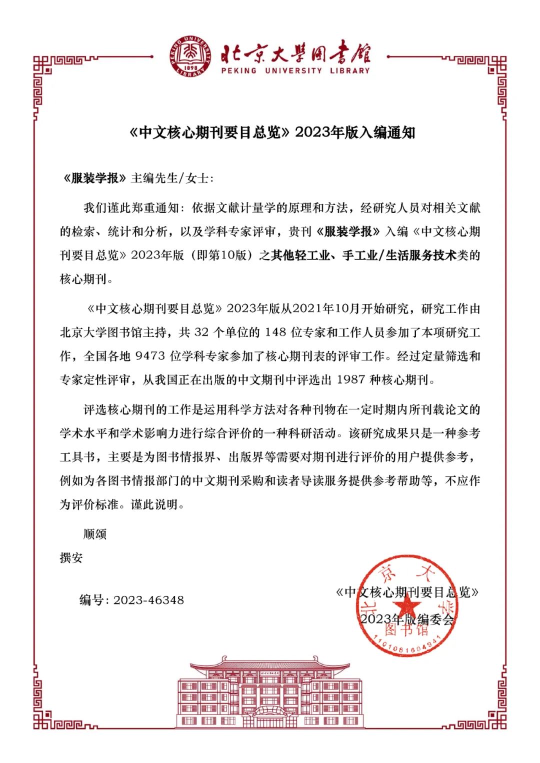 12月26日,据《中文核心期刊要目总览》2023年版编委会通知,《服装学报》入编《中文核心期刊要目总览》2023年版(即第10版)之“其他轻工业、手工业/生活服务技术类”核心期刊。这是《服装学报》学术水平和影响力的一次重大突破。