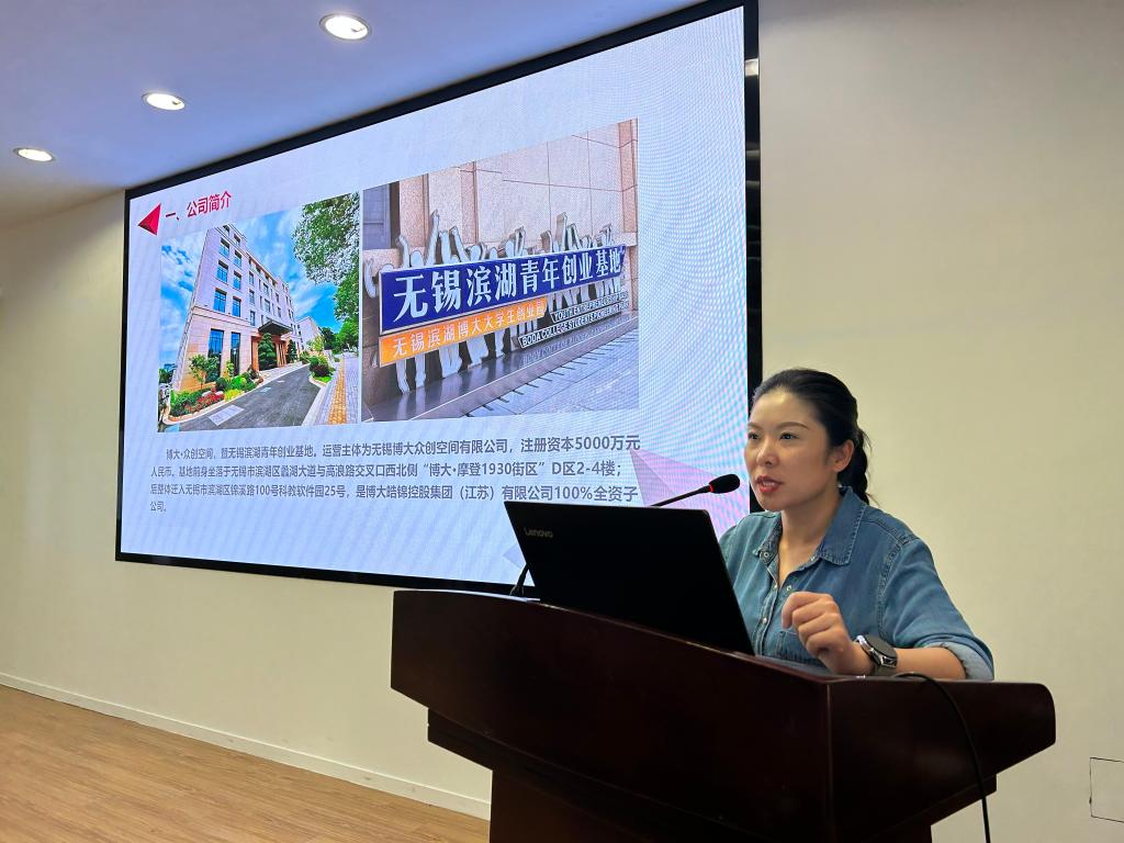 会上,吴梓萌介绍创业扶持政策,他以科技感满满的创业项目为例,分享滨湖区创业优惠政策——“0”成本创业,从扶持对象、扶持内容、创业优惠政策等方面进行详细解读,通过创业场所减免租金和享受创业扶持政策,最终实现“0”成本创业。同时,他还介绍了滨湖区的创业场所和创业孵化基地,以及创业大赛等各项资助渠道。他鼓励在校大学生勇于尝试创业。左艳具体介绍了博大·众创空间相关情况,公司位于黄瓜视频