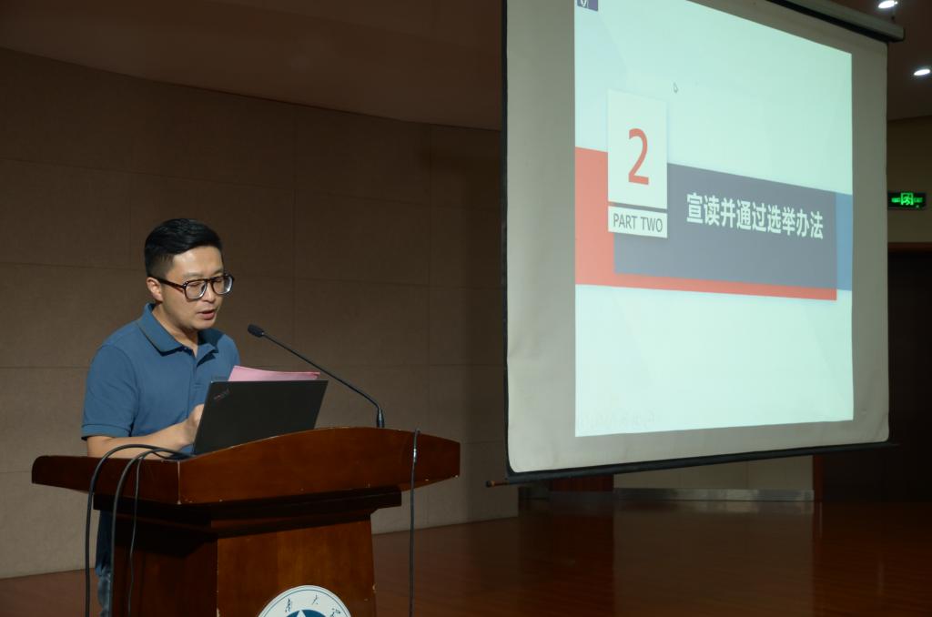 学院分工会主席卢雨正介绍代表候选人产生情况