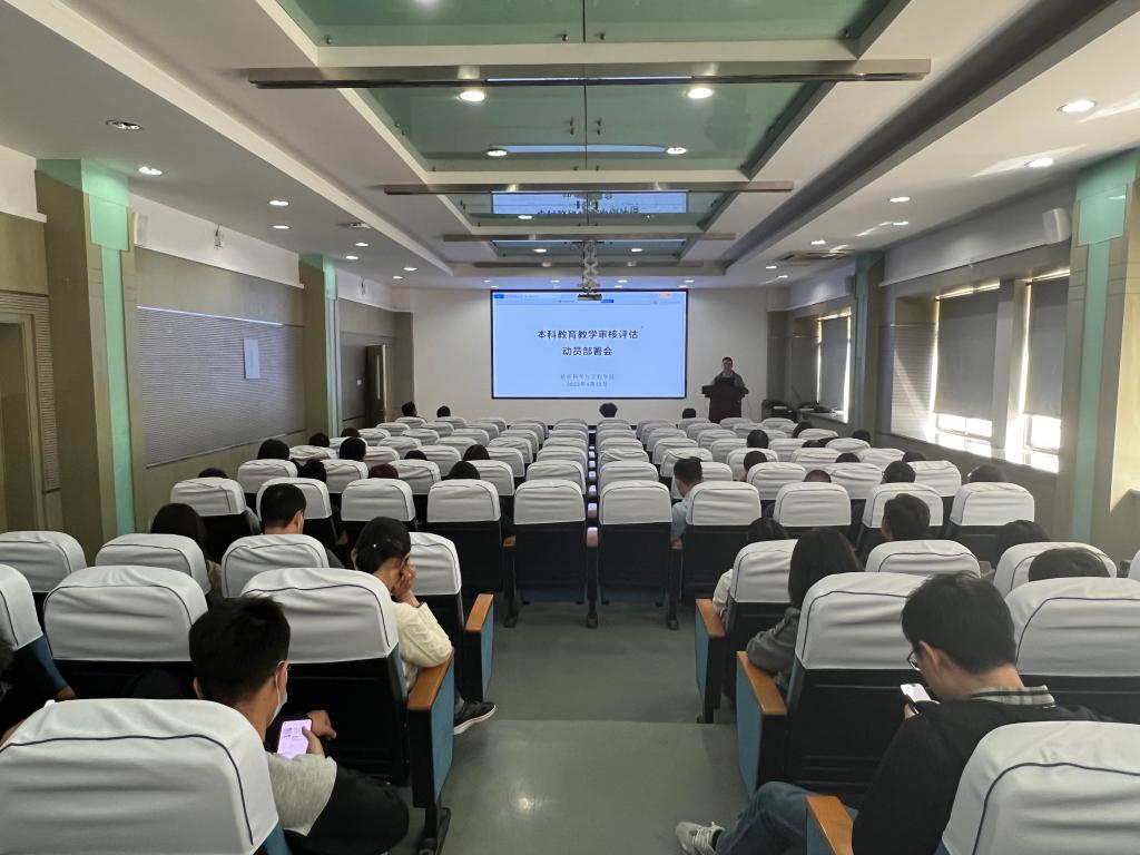 按照学院本科评估工作的进程安排,学院于4月12日召开了全院教职工大会,对本科教育教学审核评估工作进行专题宣讲,系统讲解了此次审核评估的意义、特点、评估内容以及学院的具体工作安排。院党委书记张菁燕强调,全院师生要严格按照学校、学院的工作部署,明确分工任务,凝心聚力、勇于承担、团结协作,希望全院教师从现在开始行动起来,将评估工作融入到本科教育教学的全过程,以评促建、以评促改、以评促强。