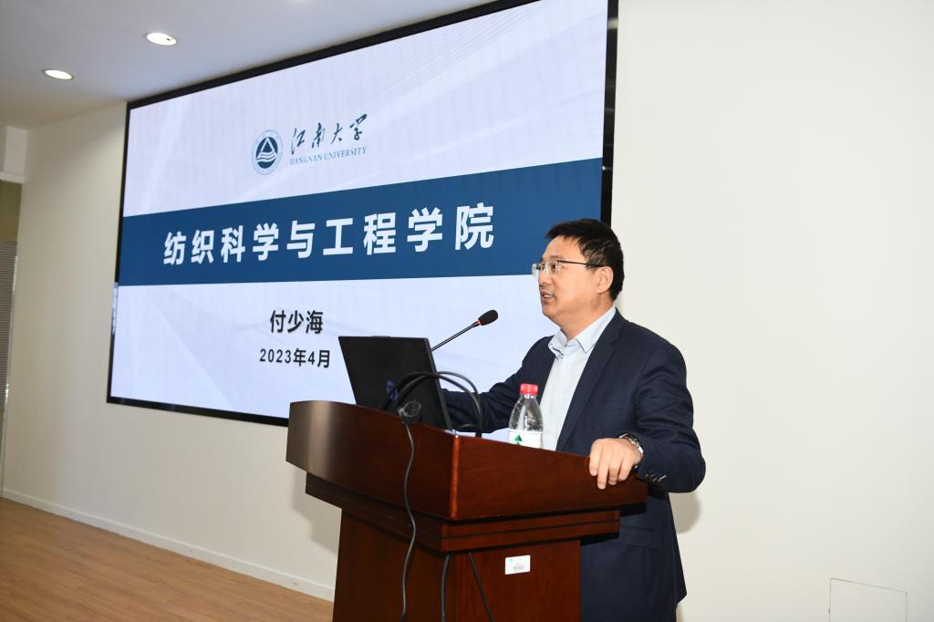 院长付少海从学科建设、师资队伍、人才培养、科学研究等方面介绍了学校、学院发展概况。他指出,学院在智能制造、数字化纺织技术、生态染整技术等方面形成了较为突出的优势与特色,行业影响力不断提升。他期许与各位专家共同努力携手为纺织学科的发展作出新贡献。