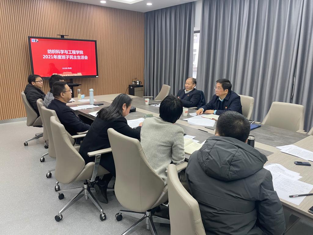 全体班子成员在纺织楼A304会议室召开党史学习教育专题民主生活会,围绕深刻领会习近平总书记关于党史学习教育的系列重要论述,深入学习贯彻党的十九届六中全会精神,弘扬伟大建党精神,坚持党的百年奋斗历史经验,坚定历史自信,践行时代使命,厚植为民情怀,勇于担当作为,团结带领人民群众走好新的赶考之路这一主题,紧密联系学院班子和个人的思想、工作实际,全面对照检查,认真检视剖析,严肃开展批评和自我批评。党委督导、校党委常委、副校长顾正彪同志,纪委督导、校纪委委员徐锡清同志参加了会议。