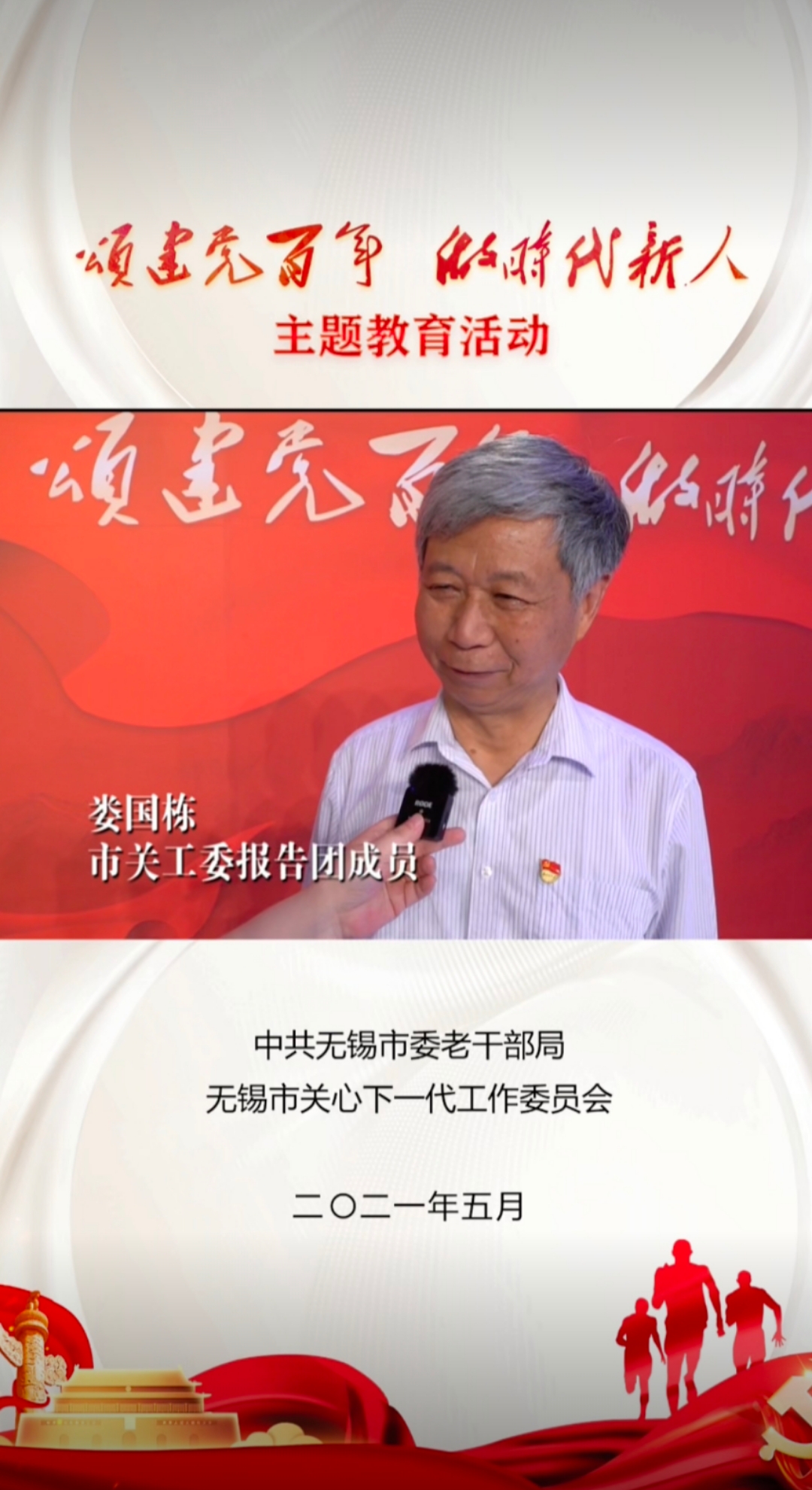 一百年雄关漫道、九万里风鹏正举。赓续精神血脉,筑牢理想信念,传承红色基因,争做时代新人。本次访谈由四位无锡市关工委报告团成员担任主讲嘉宾,他们分别是:原无锡庆丰集团漂染公司纪委书记蒋川海,原总参56研究所政委兼党委书记张发海,原无锡市侨谊实验中学书记、校长钱昭平,原黄瓜视频