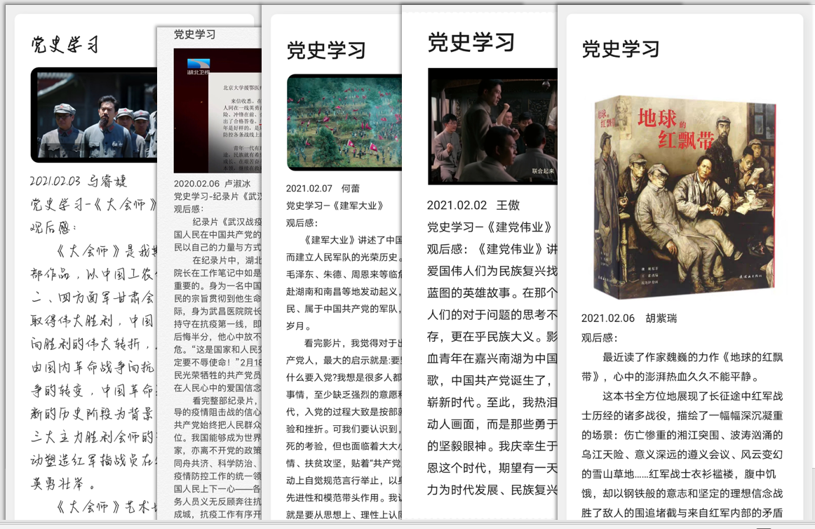 今年既是党的百年诞辰,也是开启全面建设社会主义现代化国家新征程的历史新起点。“只有正确认识历史,才能更好开创未来。”正因此,回望过往的奋斗路,眺望前方的奋进路,必须把党的历史学习好、总结好,把党的成功经验传承好、发扬好。为了切实完成好党史教育,在2月2日-2月20日期间,“读懂中国·献礼建党100周年”2021年寒假社会实践团队积极组织宣传、积极动员学院同学广泛开展党史学习主题活动,以“云打卡”的形式激励同学定期学习,并收到大量的心得反馈。