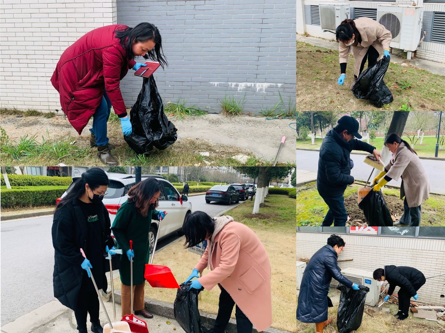 在进行简单的任务分配后,学院党委书记张菁带领所有支部党员领取清扫工具,按照对校园公共卫生环境的要求,在学院及周边公共区域进行垃圾清理和环境维护活动。一是清理绿化带、草丛中的烟头、碎玻璃等垃圾;二是清扫路面落叶、垃圾,保持道路整洁;三是规范车辆停放,杜绝乱停机动车和非机动车的现象。所有支部党员都身体力行,发扬不怕苦不怕脏的精神,互相配合。虽然天气寒冷,但是大家依然徒手清理杂物,用实际行动打造整洁优美的校园环境。